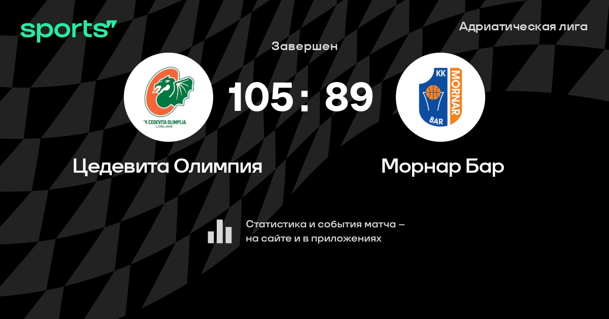 В прошедшем матче в рамках турнира Адриатическая лига состоялась встреча команд Цедевита Олимпия - Морнар Бар в городе  на стадионе Dvorana Stožice