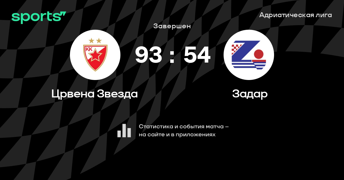 В прошедшем матче в рамках турнира Адриатическая лига состоялась встреча команд Црвена Звезда - Задар в городе Белград (Сербия) на стадионе Белград Арена (вместимость - 22386)