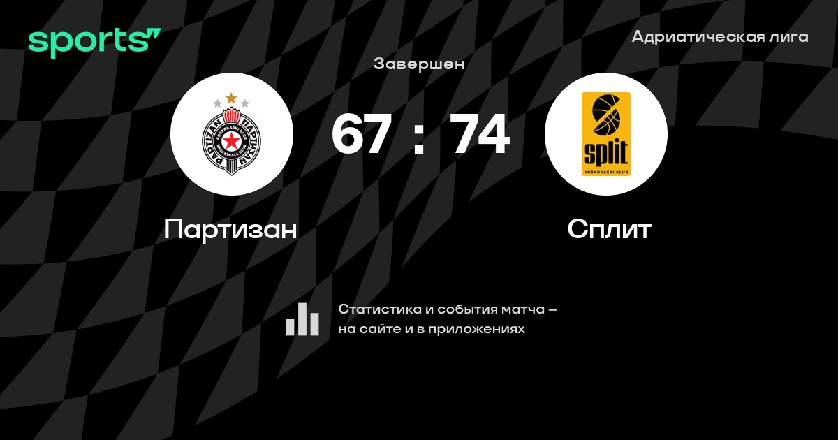 В прошедшем матче в рамках турнира Адриатическая лига состоялась встреча команд Партизан - Сплит в городе Белград (Сербия) на стадионе Белград Арена (вместимость - 22386)