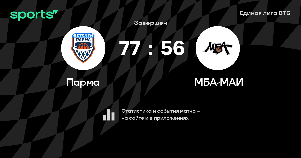 В прошедшем матче в рамках турнира Единая лига ВТБ состоялась встреча команд Парма - МБА-МАИ в городе Пермь (Россия) на стадионе УДС Молот (вместимость - 7000)