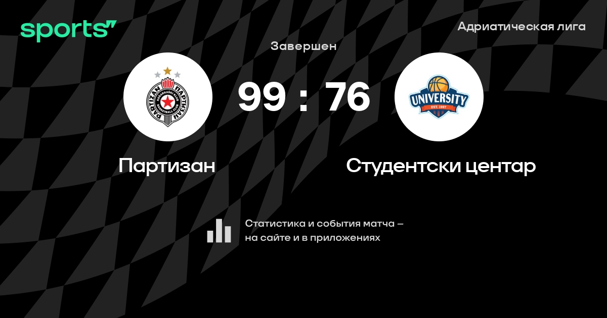 В прошедшем матче в рамках турнира Адриатическая лига состоялась встреча команд Партизан - Студентски центар в городе Белград (Сербия) на стадионе Белград Арена (вместимость - 22386)