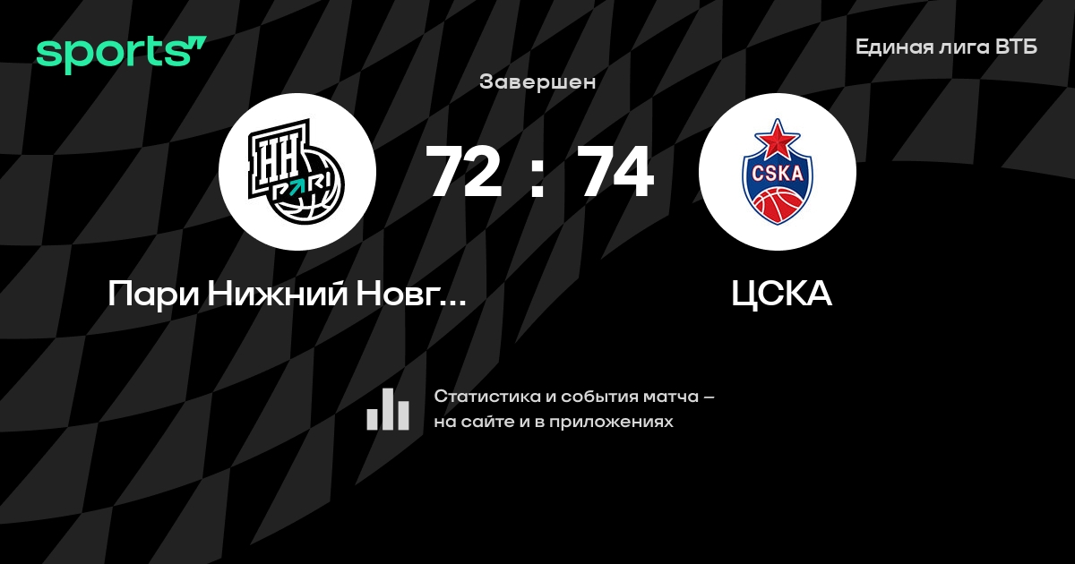 В прошедшем матче в рамках турнира Единая лига ВТБ состоялась встреча команд Пари Нижний Новгород - ЦСКА в городе Нижний Новгород (Россия) на стадионе КРК Нагорный (вместимость - 5600)