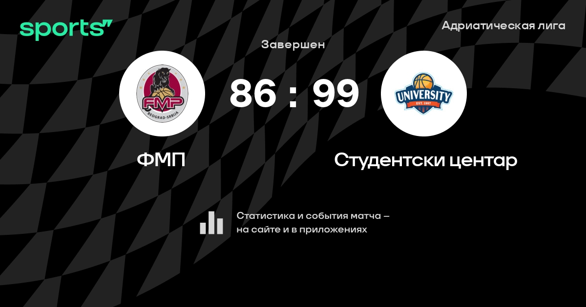 В прошедшем матче в рамках турнира Адриатическая лига состоялась встреча команд ФМП - Студентски центар в городе на стадионе Košarkaška dvorana FMP
