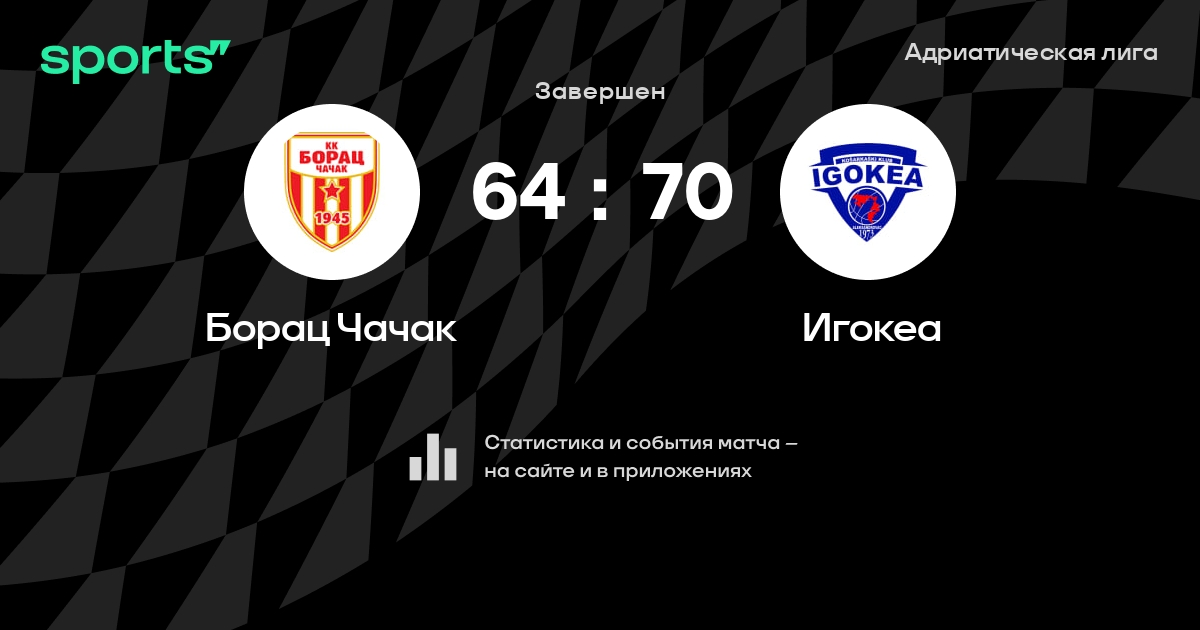 В прошедшем матче в рамках турнира Адриатическая лига состоялась встреча команд Борац Чачак - Игокеа в городе на стадионе Hala Borac