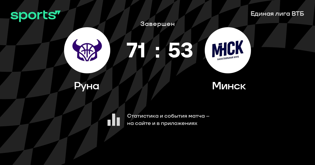 В прошедшем матче в рамках турнира Единая лига ВТБ состоялась встреча команд Руна - Минск в городе Москва (Россия) на стадионе Дворец спорта Динамо (вместимость - 5000)