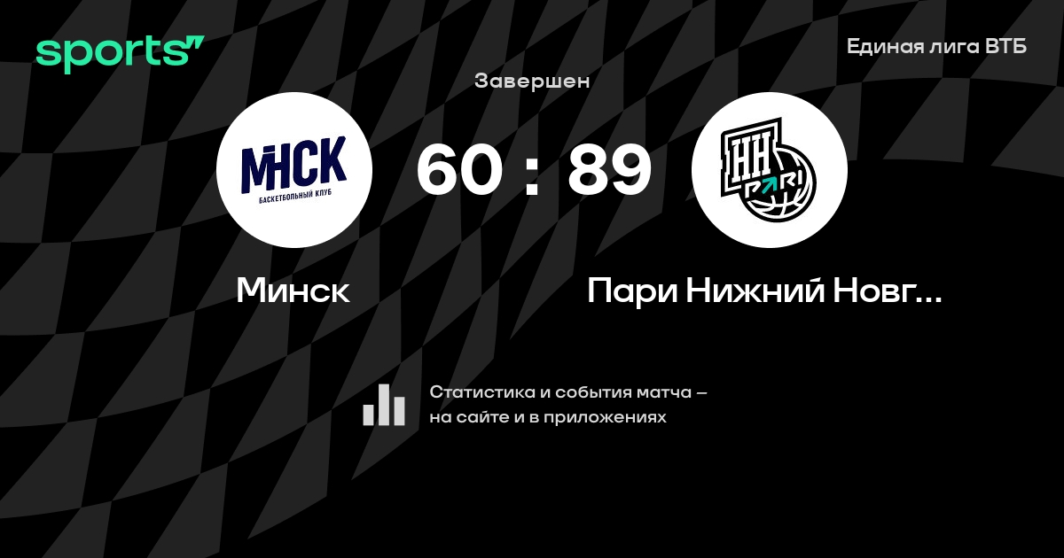 В прошедшем матче в рамках турнира Единая лига ВТБ состоялась встреча команд Минск - Пари Нижний Новгород в городе Минск (Беларусь) на стадионе Falcon Club