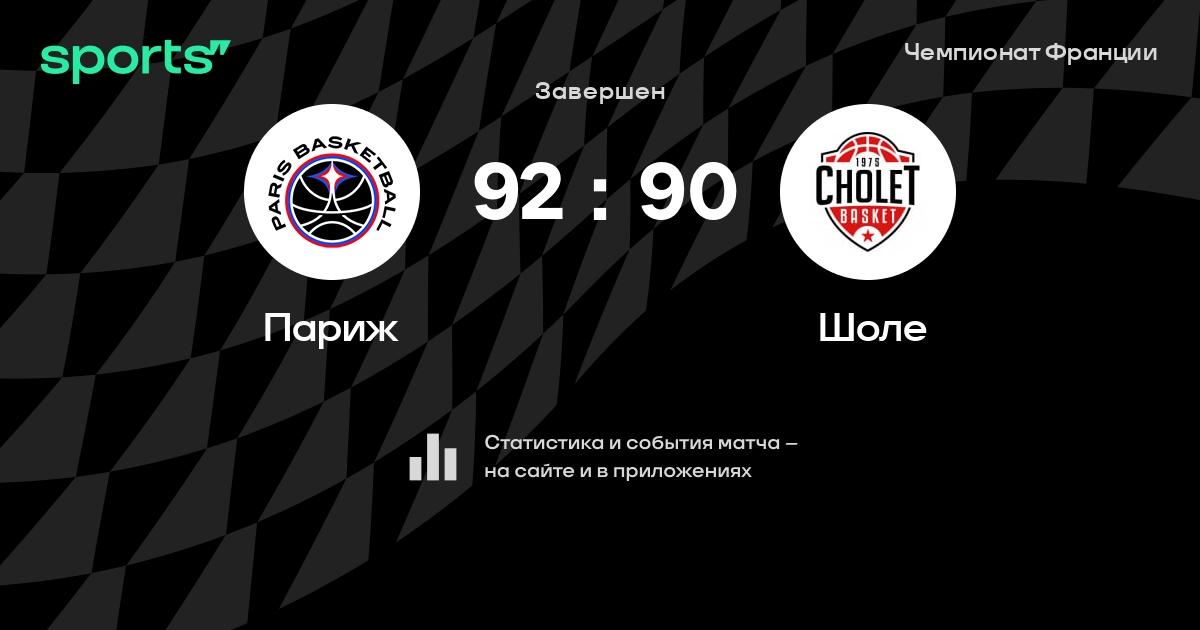 В прошедшем матче в рамках турнира Чемпионат Франции состоялась встреча команд Париж - Шоле в городе Париж (Франция) на стадионе Адидас Арена (вместимость - 8000)