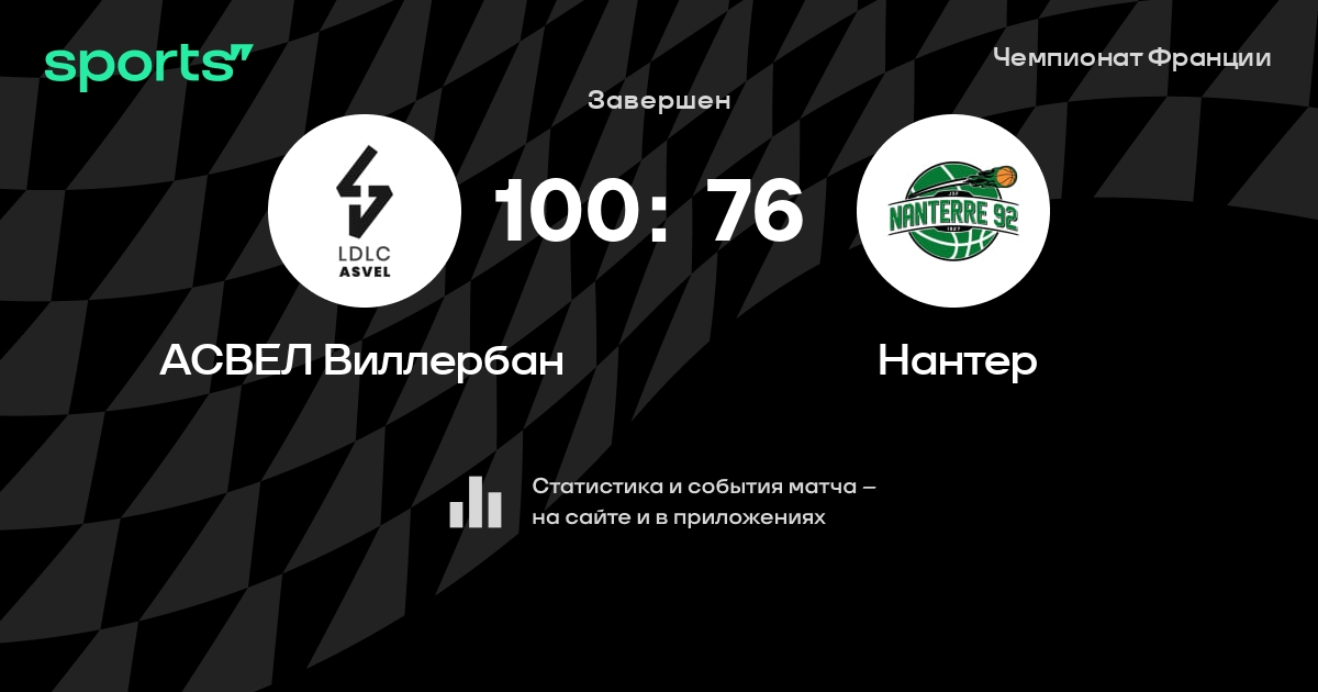 В прошедшем матче в рамках турнира Чемпионат Франции состоялась встреча команд АСВЕЛ Виллербан - Нантер в городе Виллербанн (Франция) на стадионе Астробаль (вместимость - 5556)