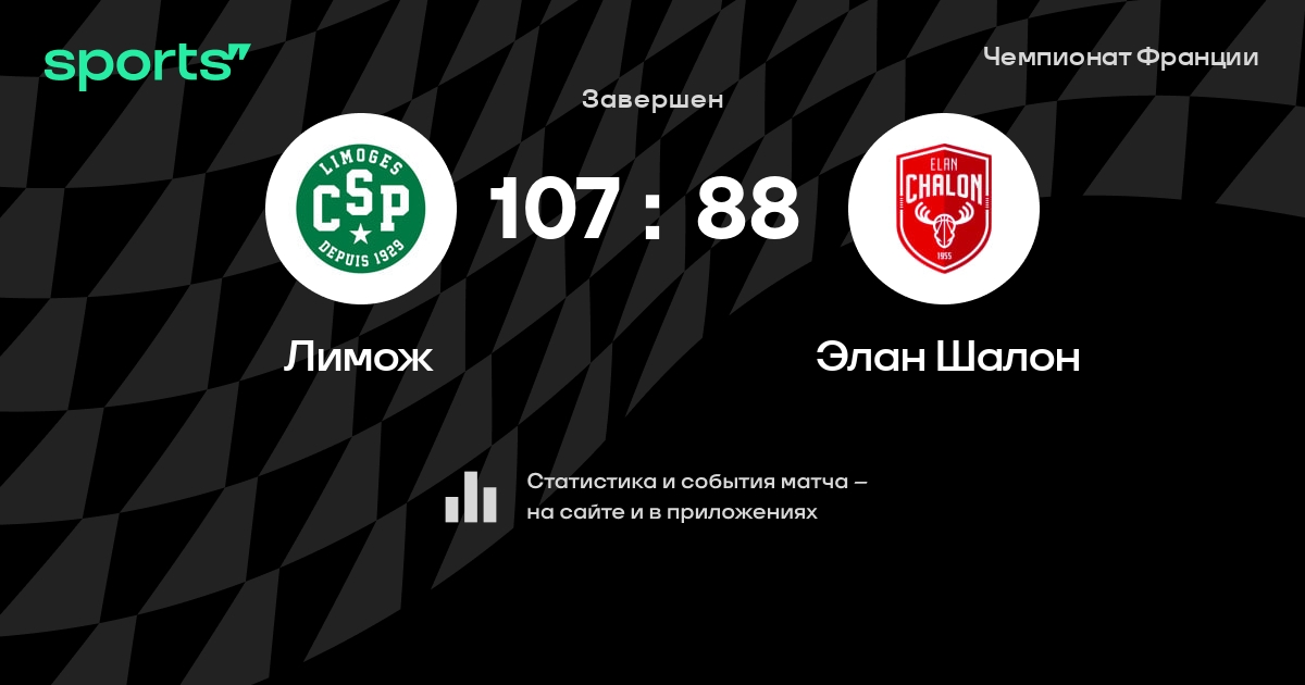 В прошедшем матче в рамках турнира Чемпионат Франции состоялась встреча команд Лимож - Элан Шалон в городе на стадионе Palais des sports de Beaublanc
