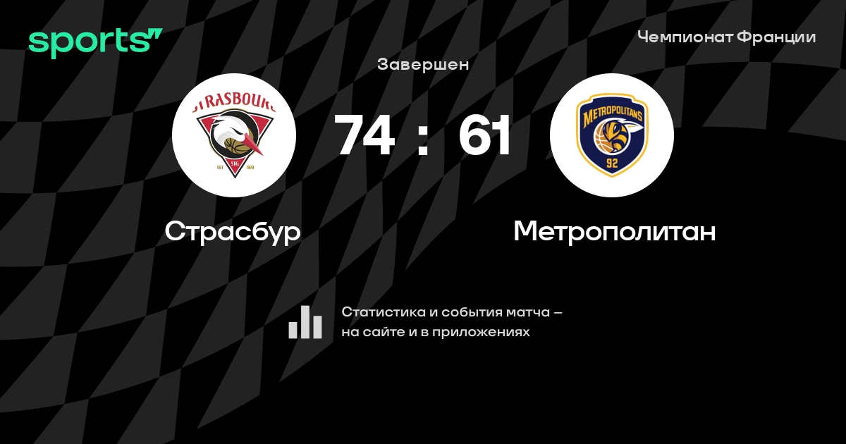В прошедшем матче в рамках турнира Чемпионат Франции состоялась встреча команд Страсбур - Метрополитан в городе на стадионе Rhénus Sport