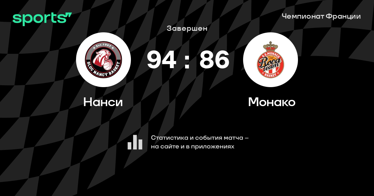 В прошедшем матче в рамках турнира Чемпионат Франции состоялась встреча команд Нанси - Монако в городе на стадионе Palais des Sports Jean Weille