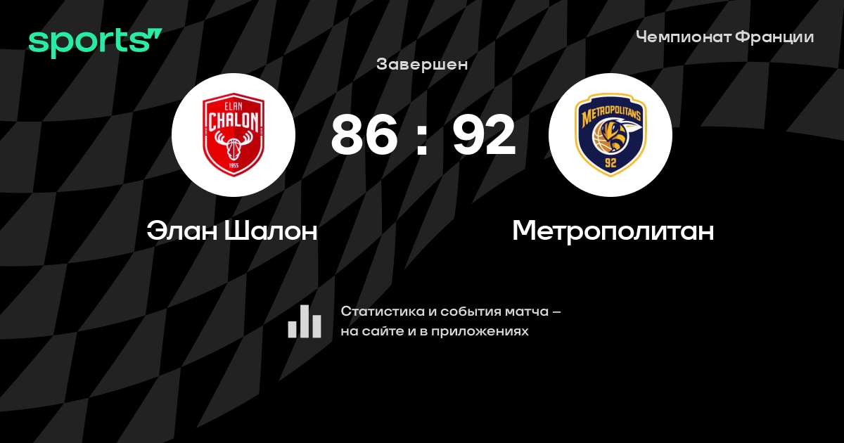 В прошедшем матче в рамках турнира Чемпионат Франции состоялась встреча команд Элан Шалон - Метрополитан в городе на стадионе Le Colisée