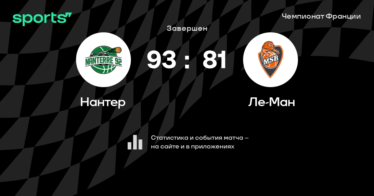 В прошедшем матче в рамках турнира Чемпионат Франции состоялась встреча команд Нантер - Ле-Ман в городе на стадионе Palais des Sports Maurice Thorez