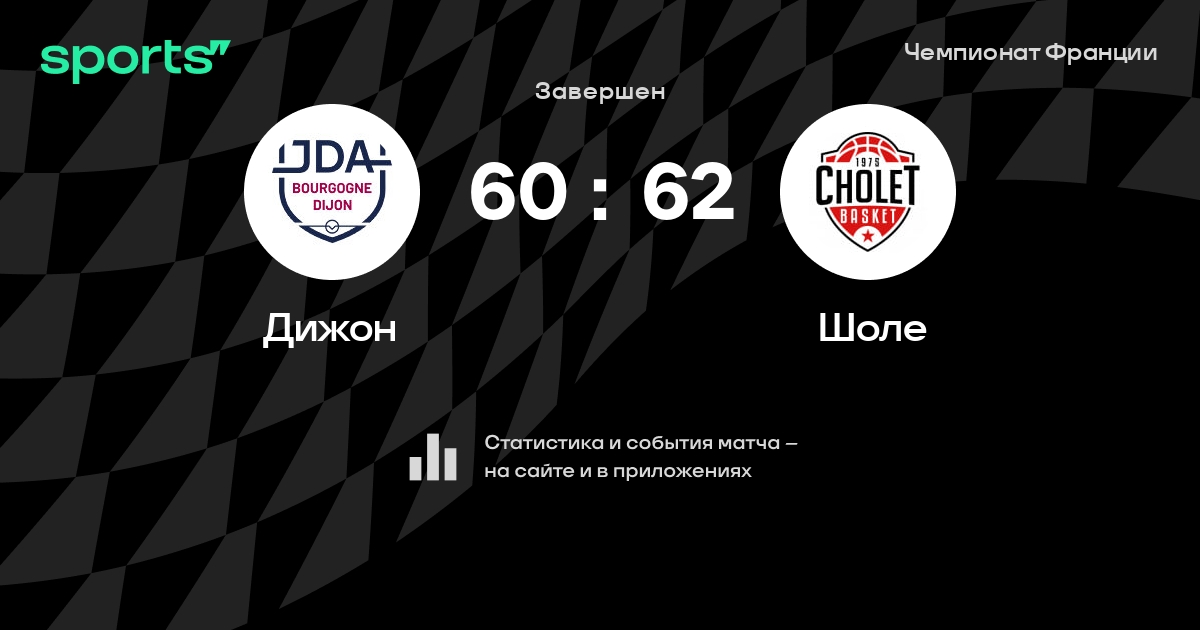 В прошедшем матче в рамках турнира Чемпионат Франции состоялась встреча команд Дижон - Шоле в городе на стадионе Palais des Sports Jean-Michel Geoffroy