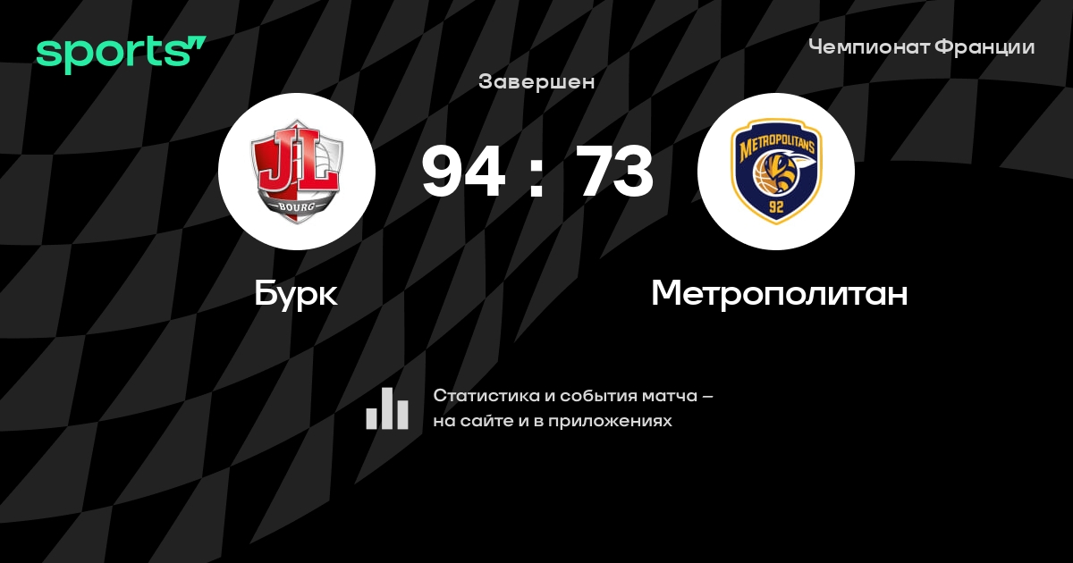 В прошедшем матче в рамках турнира Чемпионат Франции состоялась встреча команд Бурк - Метрополитан в городе на стадионе Ekinox
