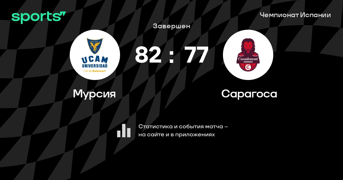 В прошедшем матче в рамках турнира Чемпионат Испании состоялась встреча команд Мурсия - Сарагоса в городе Murcia на стадионе Palacio Municipal De Deportes