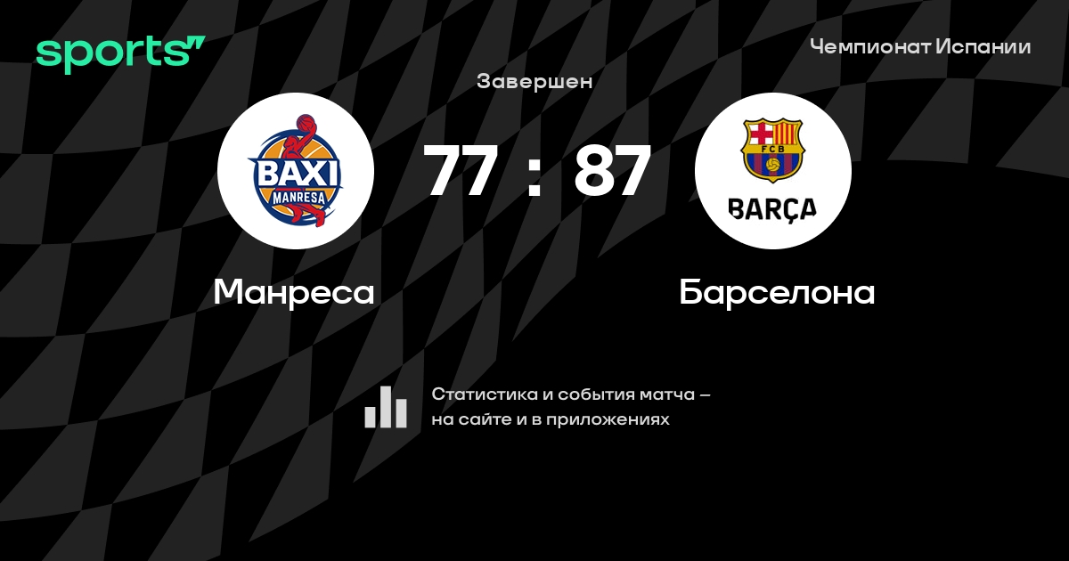 В прошедшем матче в рамках турнира Чемпионат Испании состоялась встреча команд Манреса - Барселона в городе Manresa на стадионе Pavelló Nou Congost