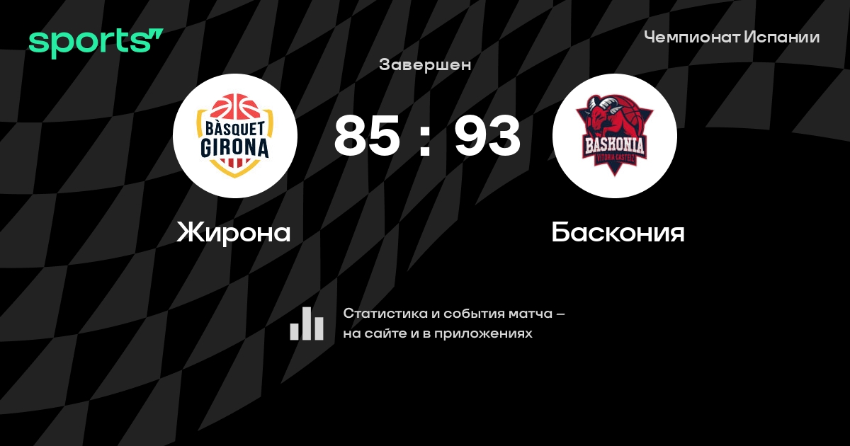 В прошедшем матче в рамках турнира Чемпионат Испании состоялась встреча команд Жирона - Баскония в городе на стадионе Pavelló Municipal d'Esports Girona-Fontajau