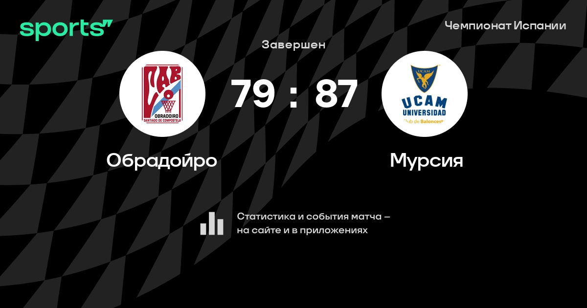 В прошедшем матче в рамках турнира Чемпионат Испании состоялась встреча команд Обрадойро - Мурсия в городе Santiago de Compostela на стадионе Pabellón Multiusos Fontes do Sar