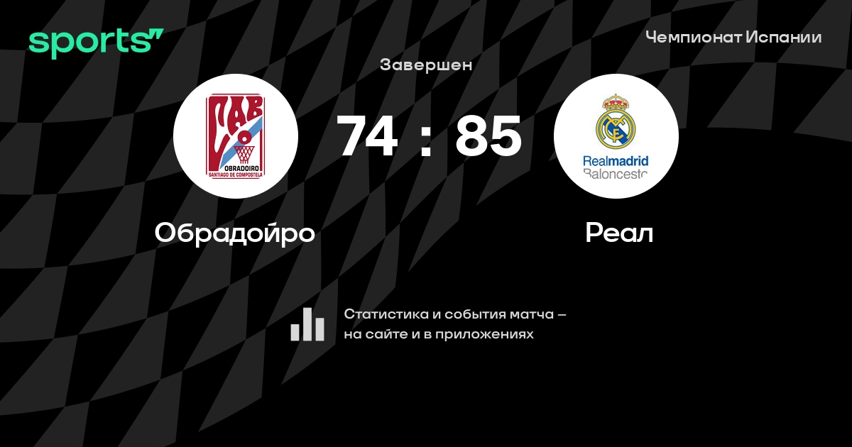 В прошедшем матче в рамках турнира Чемпионат Испании состоялась встреча команд Обрадойро - Реал в городе Santiago de Compostela на стадионе Pabellón Multiusos Fontes do Sar
