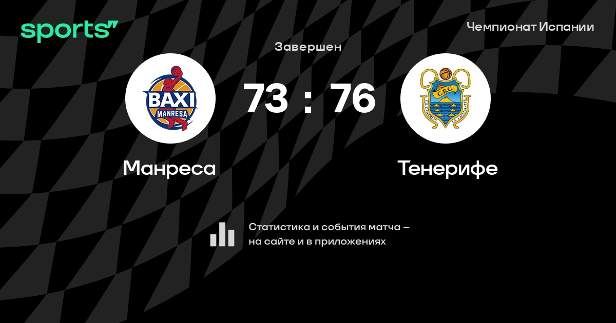 В прошедшем матче в рамках турнира Чемпионат Испании состоялась встреча команд Манреса - Тенерифе в городе Manresa на стадионе Pavelló Nou Congost