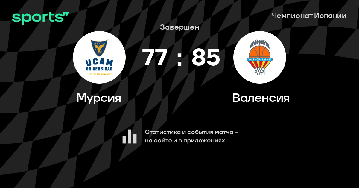 В прошедшем матче в рамках турнира Чемпионат Испании состоялась встреча команд Мурсия - Валенсия в городе Murcia на стадионе Palacio Municipal De Deportes