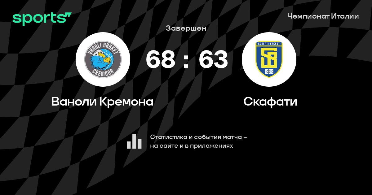 В прошедшем матче в рамках турнира Чемпионат Италии состоялась встреча команд Ваноли Кремона - Скафати в городе на стадионе Palasport Mario Radi