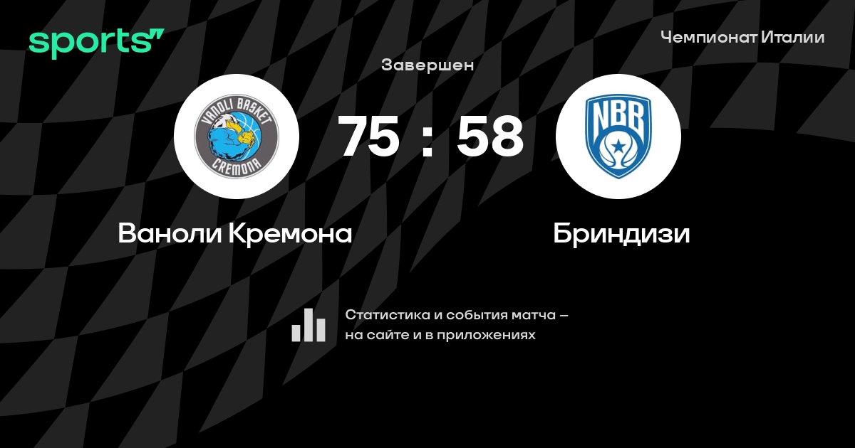 Как прошел матч, смотрите в текстовой трансляции Ваноли Кремона - Бриндизи на Sports.ru