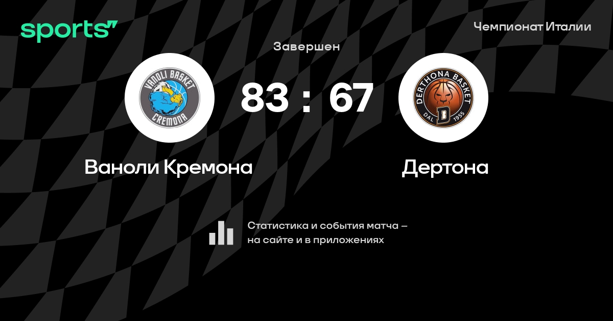 В прошедшем матче в рамках турнира Чемпионат Италии состоялась встреча команд Ваноли Кремона - Дертона в городе на стадионе Palasport Mario Radi
