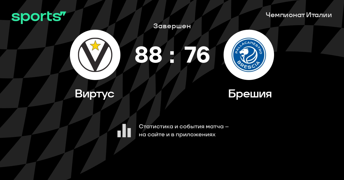 В прошедшем матче в рамках турнира Чемпионат Италии состоялась встреча команд Виртус - Брешия в городе Болонья (Италия) на стадионе Виртус Арена (вместимость - 9980)