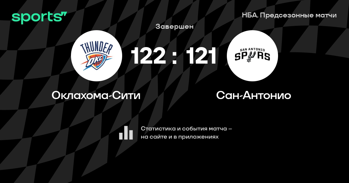 В прошедшем матче в рамках турнира НБА. Предсезонные матчи состоялась встреча команд Оклахома-Сити - Сан-Антонио в городе Оклахома (США) на стадионе Paycom Center (вместимость - 19599)