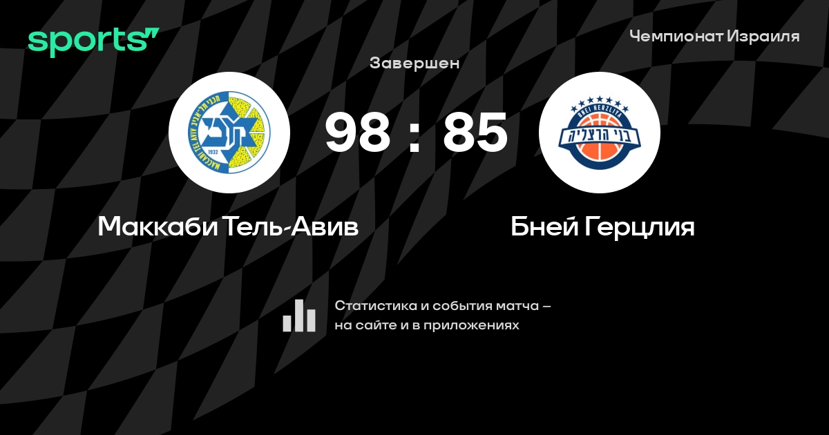 В прошедшем матче в рамках турнира Чемпионат Израиля состоялась встреча команд Маккаби Тель-Авив - Бней Герцлия в городе Тель-Авив (Израиль) на стадионе Менора-Мивтахим Арена (вместимость - 11700)