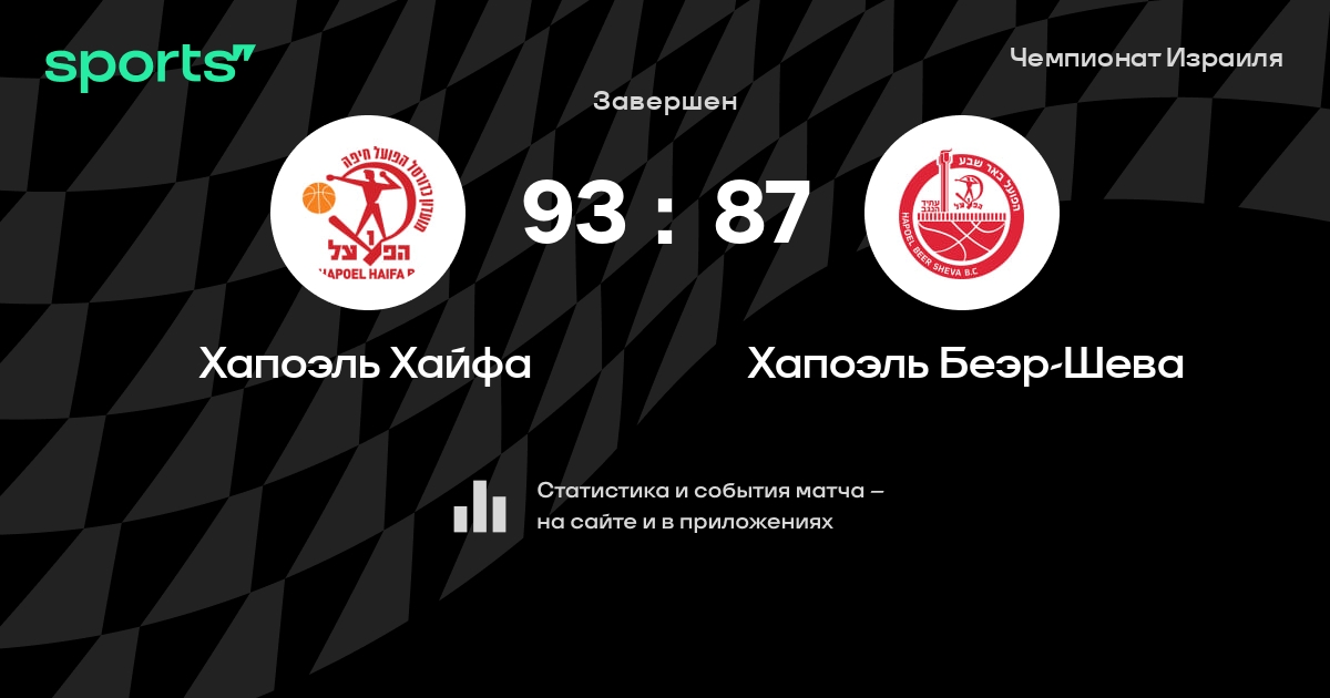 В прошедшем матче в рамках турнира Чемпионат Израиля состоялась встреча команд Хапоэль Хайфа - Хапоэль Беэр-Шева в городе Haifa на стадионе Romema Arena