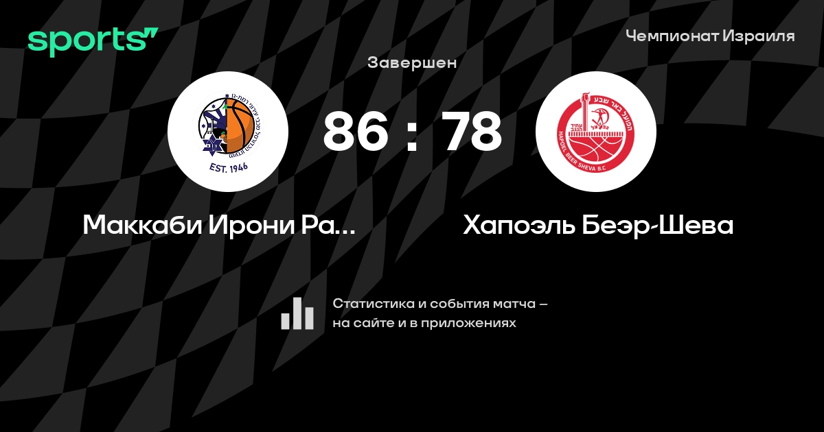 В прошедшем матче в рамках турнира Чемпионат Израиля состоялась встреча команд Маккаби Ирони Рамат-Ган - Хапоэль Беэр-Шева в городе на стадионе Zisman Sports Hall