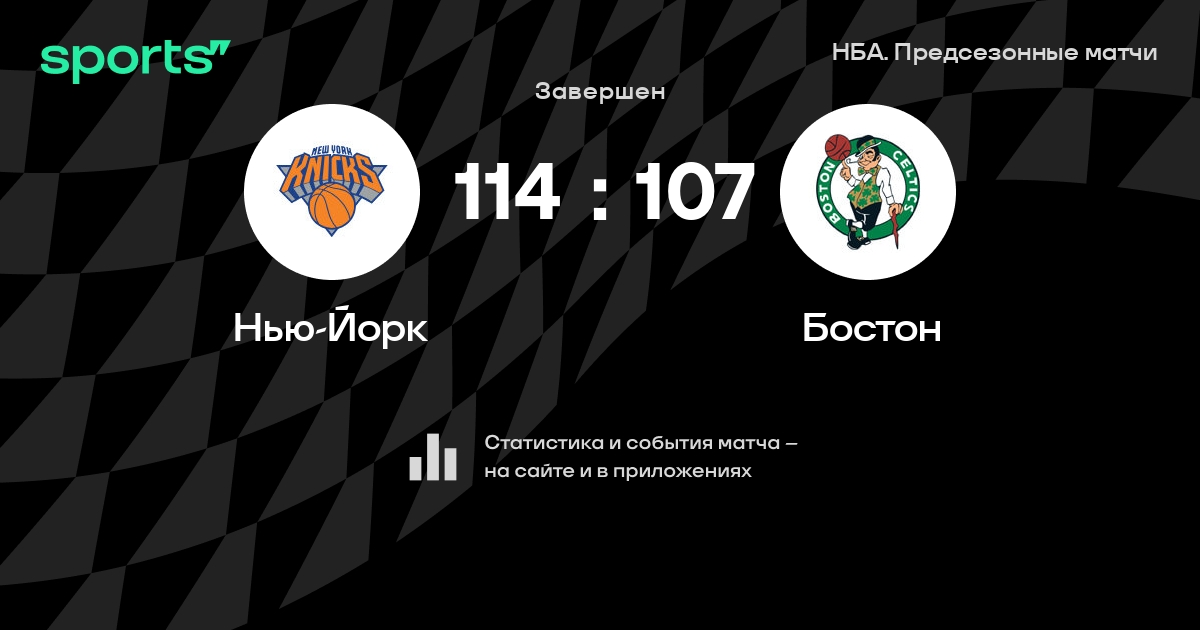 В прошедшем матче в рамках турнира НБА. Предсезонные матчи состоялась встреча команд Нью-Йорк - Бостон в городе Нью-Йорк (США) на стадионе Madison Square Garden (вместимость - 19763)