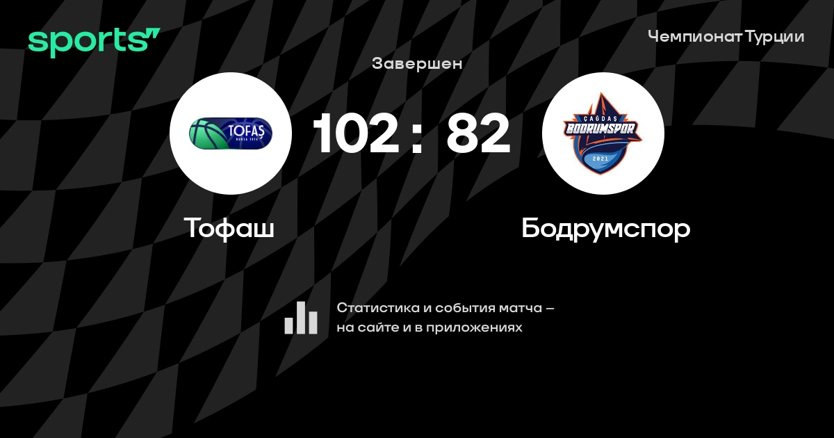 В прошедшем матче в рамках турнира Чемпионат Турции состоялась встреча команд Тофаш - Бодрумспор в городе на стадионе Tofaş Spor Salonu
