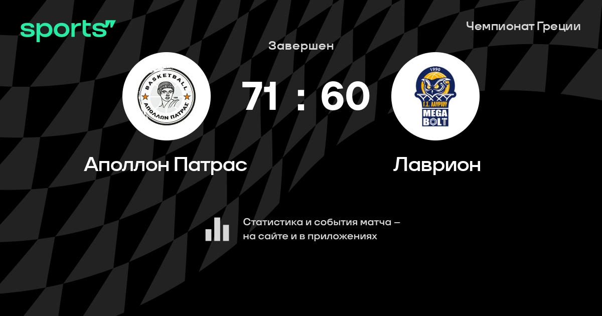В прошедшем матче в рамках турнира Чемпионат Греции состоялась встреча команд Аполлон Патрас - Лаврион в городе на стадионе Kleisto Gymnastirio Apollona Patras