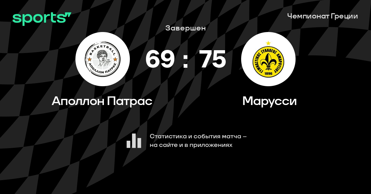 В прошедшем матче в рамках турнира Чемпионат Греции состоялась встреча команд Аполлон Патрас - Марусси в городе на стадионе Kleisto Gymnastirio Apollona Patras