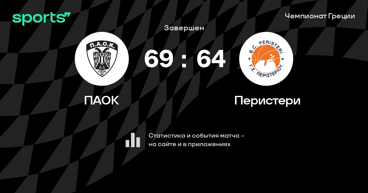 В прошедшем матче в рамках турнира Чемпионат Греции состоялась встреча команд ПАОК - Перистери в городе на стадионе Kleisto Gipedo PAOK