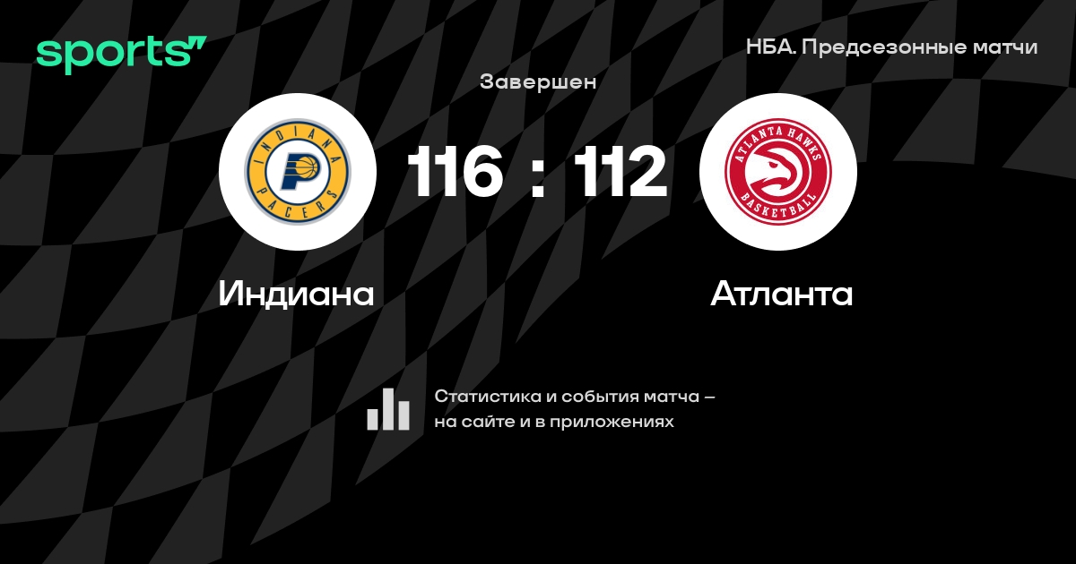 В прошедшем матче в рамках турнира НБА. Предсезонные матчи состоялась встреча команд Индиана - Атланта в городе Индианаполис (США) на стадионе Gainbridge Fieldhouse (вместимость - 18345)