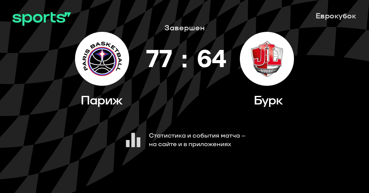 В прошедшем матче в рамках турнира Еврокубок (Финал) состоялась встреча команд Париж - Бурк в городе Париж (Франция) на стадионе Адидас Арена (вместимость - 8000)