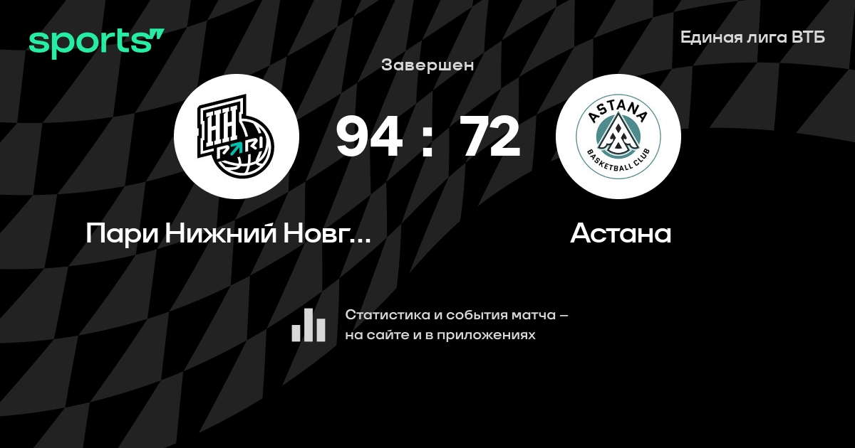 В прошедшем матче в рамках турнира Единая лига ВТБ состоялась встреча команд Пари Нижний Новгород - Астана в городе Нижний Новгород (Россия) на стадионе КРК Нагорный (вместимость - 5600)