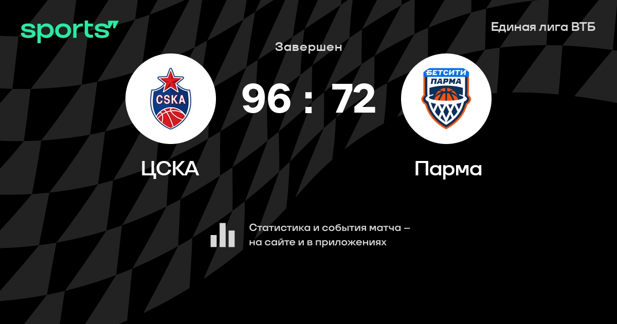 В прошедшем матче в рамках турнира Единая лига ВТБ состоялась встреча команд ЦСКА - Парма в городе Москва (Россия) на стадионе Баскет Холл Москва (вместимость - 5000)