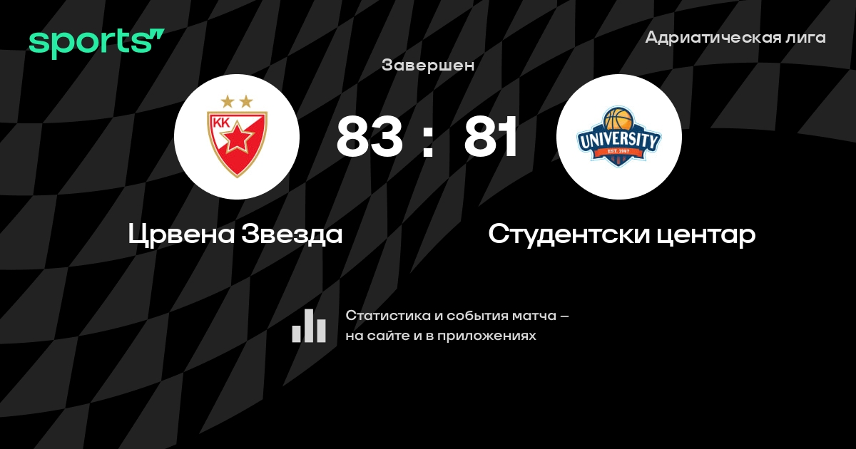 В прошедшем матче в рамках турнира Адриатическая лига (Четвертьфинал) состоялась встреча команд Црвена Звезда - Студентски центар в городе Белград (Сербия) на стадионе Белград Арена (вместимость - 22386)