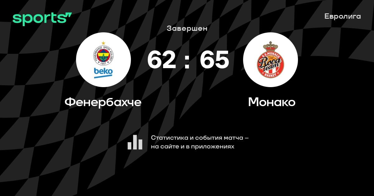 В прошедшем матче в рамках турнира Евролига (Четвертьфинал) состоялась встреча команд Фенербахче - Монако в городе Стамбул (Турция) на стадионе Улкер Спортс Арена (вместимость - 13000)
