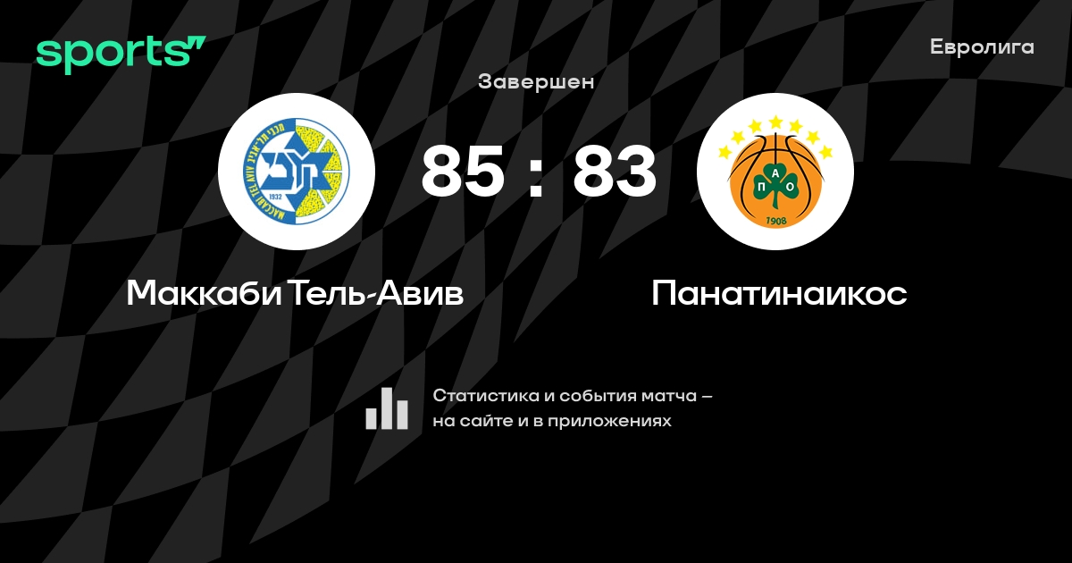В прошедшем матче в рамках турнира Евролига (Четвертьфинал) состоялась встреча команд Маккаби Тель-Авив - Панатинаикос в городе Белград (Сербия) на стадионе Александар Николич Холл (вместимость - 7000)
