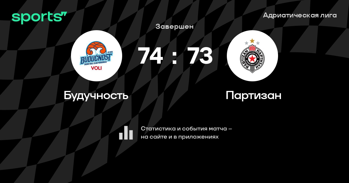 В прошедшем матче в рамках турнира Адриатическая лига (Полуфинал) состоялась встреча команд Будучность - Партизан в городе Подгорица (Черногория) на стадионе Морача (вместимость - 6000)