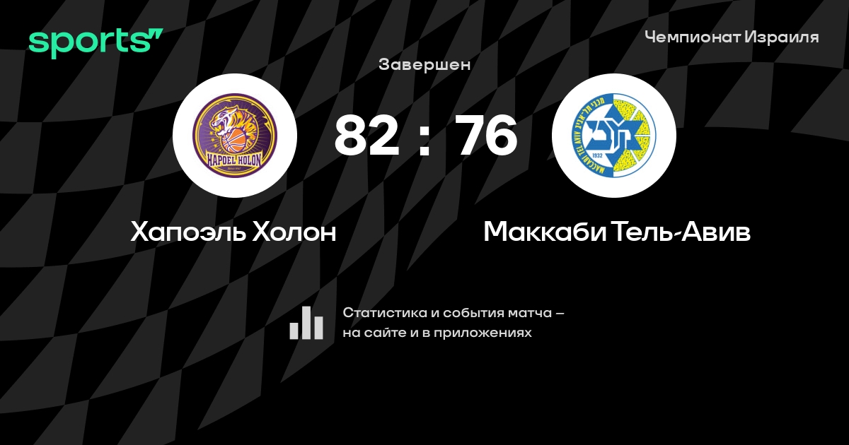 В прошедшем матче в рамках турнира Чемпионат Израиля состоялась встреча команд Хапоэль Холон - Маккаби Тель-Авив в городе на стадионе Holon Toto Hall