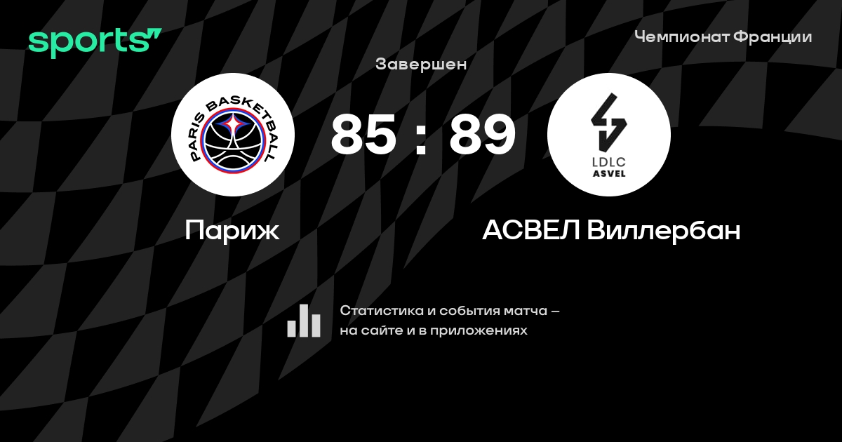 В прошедшем матче в рамках турнира Чемпионат Франции (Полуфинал) состоялась встреча команд Париж - АСВЕЛ Виллербан в городе Париж (Франция) на стадионе Адидас Арена (вместимость - 8000)