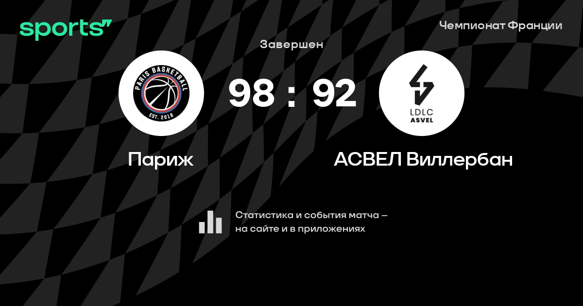 В прошедшем матче в рамках турнира Чемпионат Франции (Полуфинал) состоялась встреча команд Париж - АСВЕЛ Виллербан в городе Париж (Франция) на стадионе Адидас Арена (вместимость - 8000)